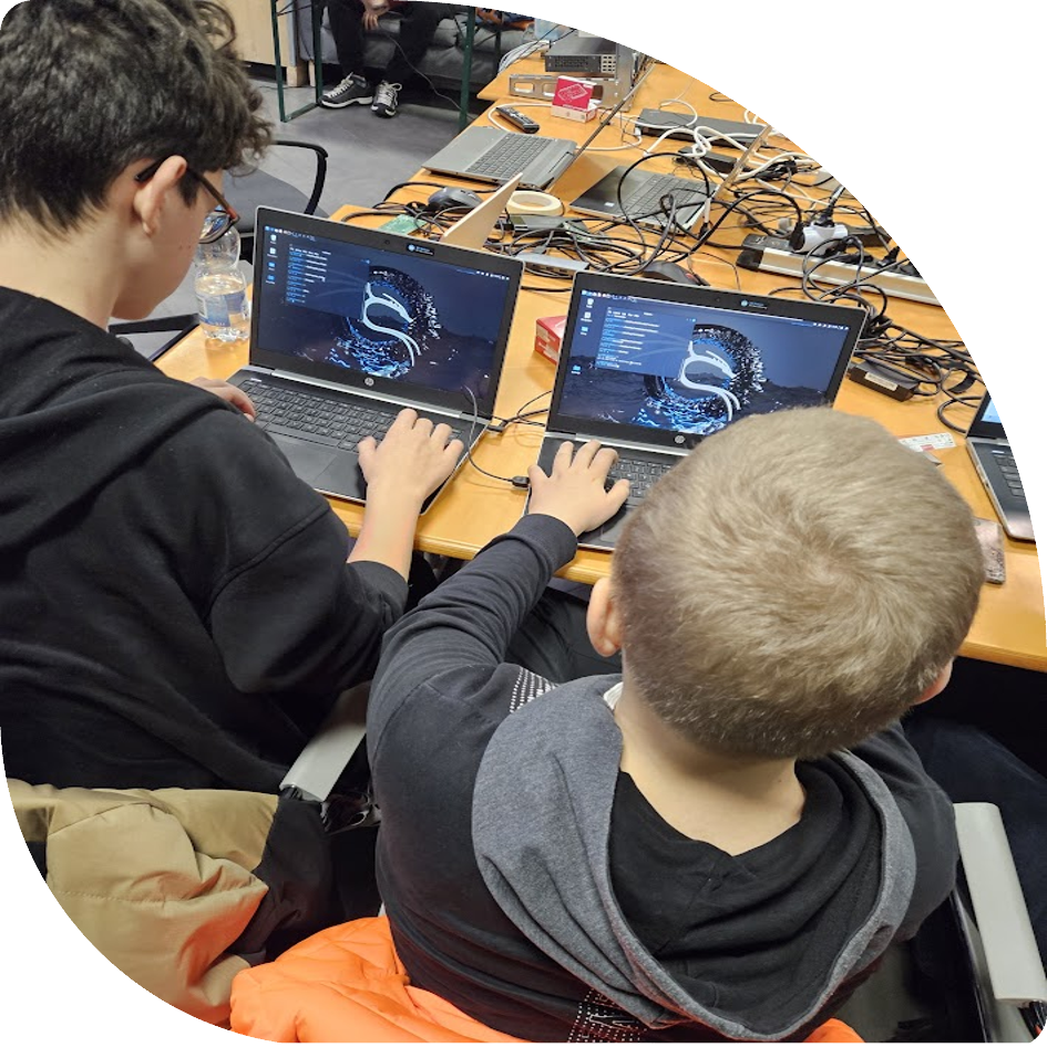 V praksi spoznavamo svet računalništva – od sestavljanja računalnikov in programiranja mikrokrmilnikov do ustvarjanja elektronske glasbe, fotografije, 3D tiska in umetne inteligence.